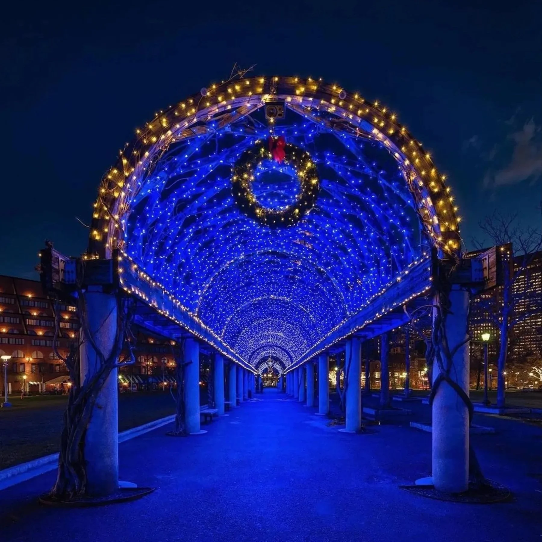 Watch Boston’s waterfront sparkle as thousands of blue and white lights illuminate the iconic trellis at Christopher Columbus Park. This heartwarming tradition marks the start of the city’s holiday season, perfect for photos and festive strolls.
