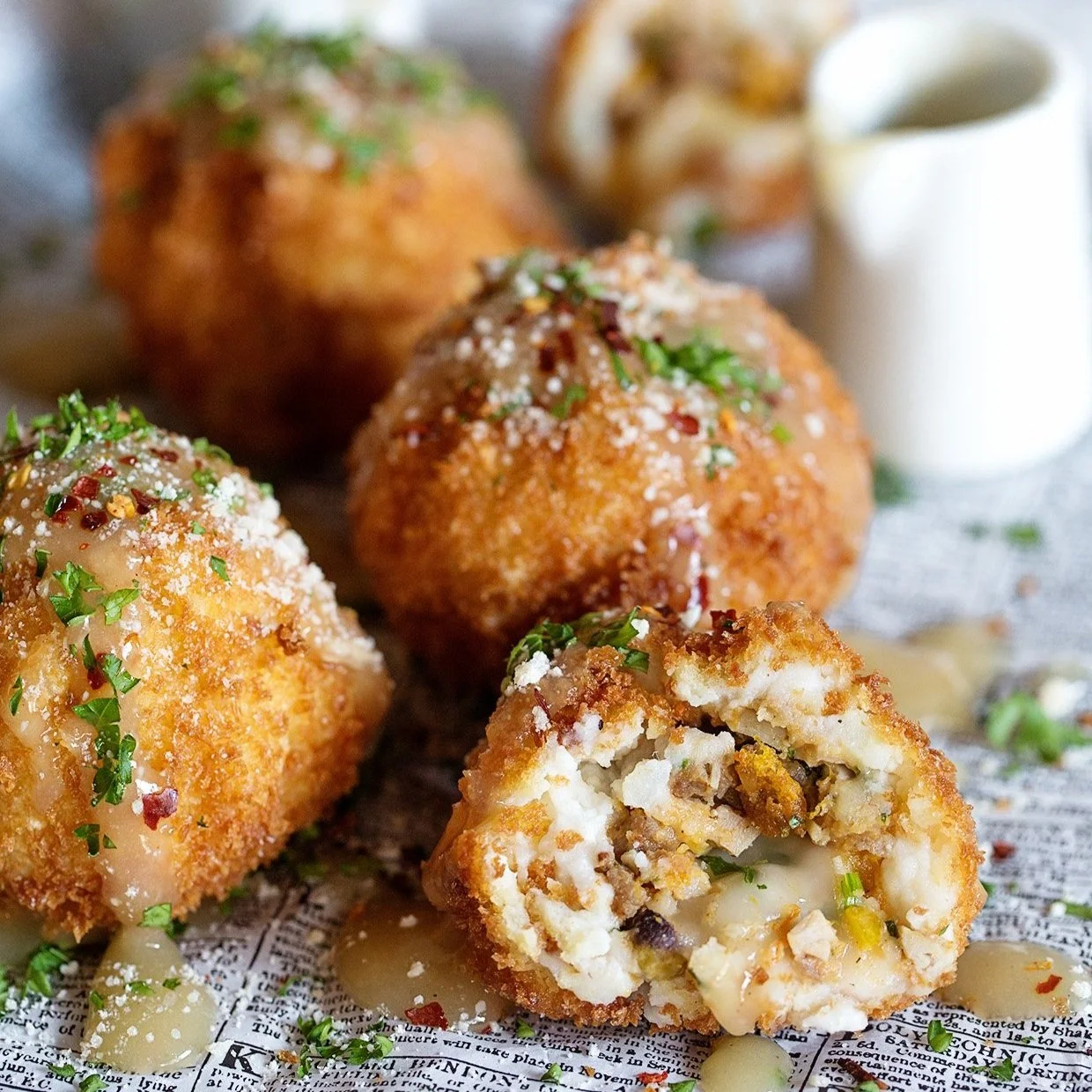 These bite-sized delights combine the remnants of a Thanksgiving feast, including turkey, stuffing, and cranberry sauce, rolling them into savory balls. These are then coated in crispy breadcrumbs for a delightful texture.