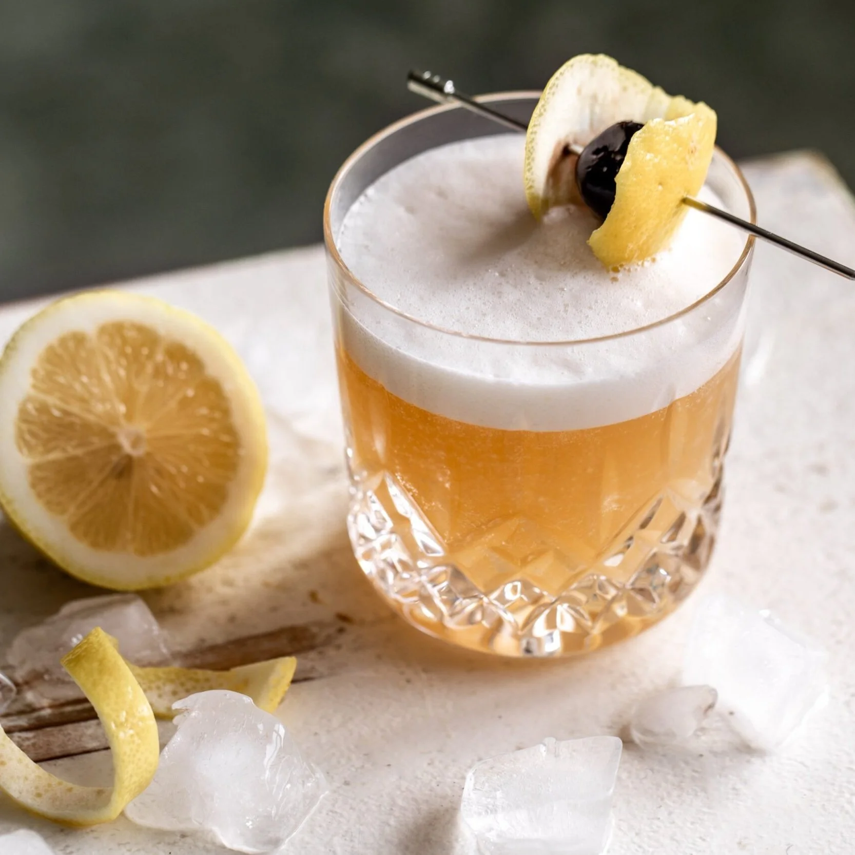 Add amaretto, lemon juice, simple syrup and egg white to a shaker.